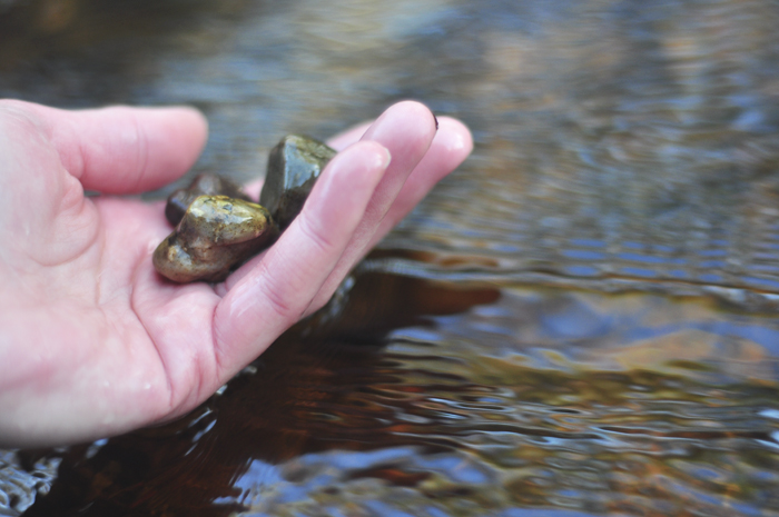 I förmiddags gick jag ner till bäcken för att leta efter stenar. Jag har länge tänkt att jag skulle vilja göra smycken av riktiga stenar. Som halsband och annat. Och det skulle vara så roligt att göra det av stenar som verkligen är plockade från naturen här. Även om stenarna kanske inte ser sådär jättevackra och slipade ut så ger det ju ändå en speciell känsla att veta vart de kommer ifrån. Jag hade i alla fall tyckt om att ha ett halsband med en sten som legat i bäcken som rinner genom skogarna här. Det skulle kännas så äkta på något vis.