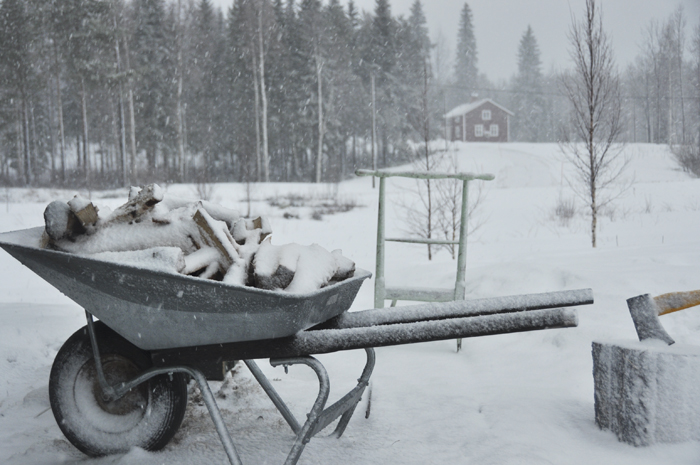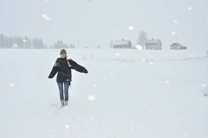 När jag nyss kom hem efter en dag i Sollefteå så möttes jag av en rejäl snöstorm här i Grundtjärn. Det gick knappt att vara ute. Snön piskade i ansiktet och det gick inte att se något. Allt var bara vitt. Först blev jag lite ledsen för att det började snöa så mycket, med sedan var det bara att gilla läget och så tänkte jag att jag måste gå ut och njuta lite extra av snön nu, som jag snart inte kommer att se på några månader när sommaren är här 🙂