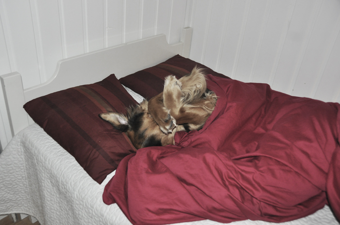 Däremot är det väldigt kallt idag. Om det är vackert väder, så är det alltid väldigt kallt. Så nu när jag vaknade var det bara 8 grader här inne. Då är det jobbigt att kliva upp från sängen. Tur att jag har en valp som väcker mig och gnyr tills jag går upp, annars hade det varit svårt 🙂