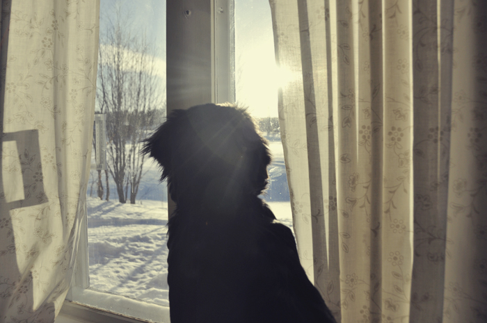 Vacker dag! Posted on 2 februari, 2011 by JonnaÅhh jag får nästan vårkänslor. Underbara sol!Haha efter jag hade tagit bilden på mig vid fönstret hoppade Nanook upp på stolen och tittade ut på precis samma sätt 😉