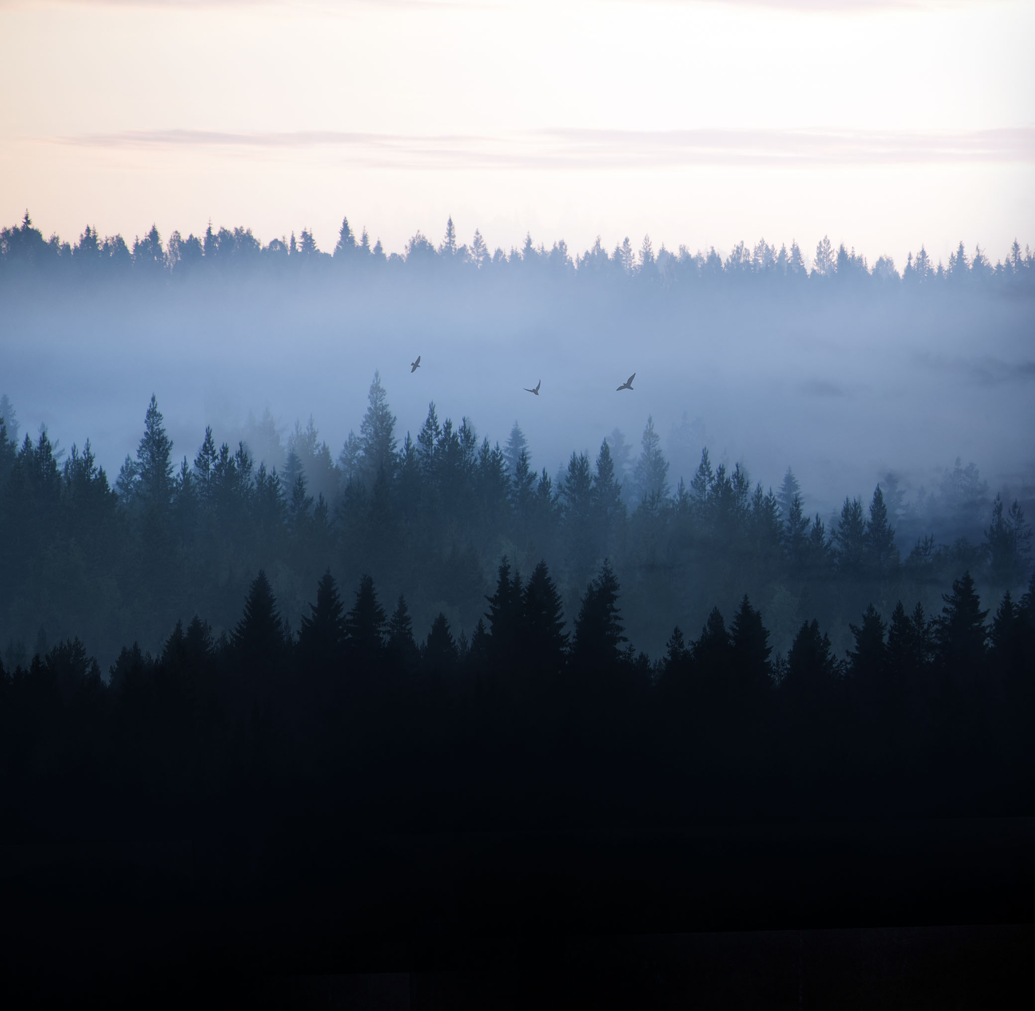 080402Det är något speciellt med de där blåa ljuset och det starka skenet ovanför granarna.