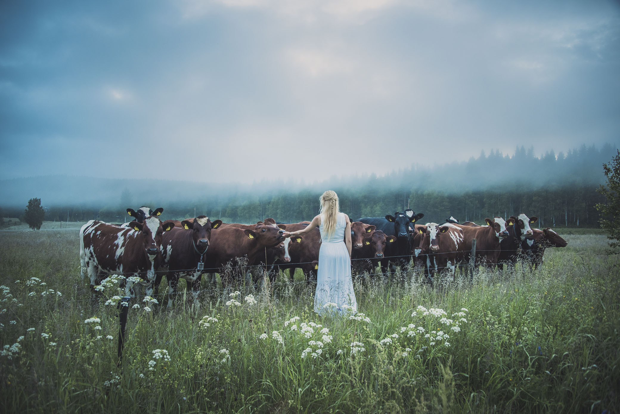 When I first heard you singing, kulning, to the cows and out in the forest, it brought tears to my eye, like an ancient memory awakened in me. The sound of your voice goes right to my soul. The story of how you listened to the song of “now all my animals came”, then set your brushes down, touched my heart so much… and then to go out and see the first stars since May… oh the wonder and beauty of it all. That blue light and glow is really something very special.