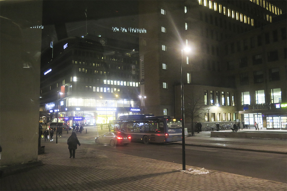 Pratade med personalen om olika möjligheter och tog sedan beslutet att ta mig med buss in till Helsingfors och sedan därifrån åka flygbuss till flygplatsen och spendera natten där, om dem nu inte kunde vara snäll och boka om så jag kunde ta flyget 23.50 istället. Jag kände mig nästan lite snurrig efter allt. När jag väl kom på bussen så verkade det inte som busschauffören förstod engelska så bra. Och han såg hemskt sur ut när jag kom med kontanter viftandes haha. Så han bara suckade och gjorde en gest att jag fick gå på ändå. Jag hade fått höra att jag skulle kliva av vid “Kampii”. Mitt i centrala Helsingfors. Jag satt spänd och undrade hur sjutton jag skulle få reda på när jag är framme. Jag ville inte fråga den sura busschaffören först, men tillslut kände jag mig tvungen att resa på mig och gå fram och fråga.