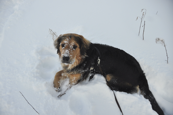 Så mycket snö ni har! Som ett julkort. Nanook är en sötnos!